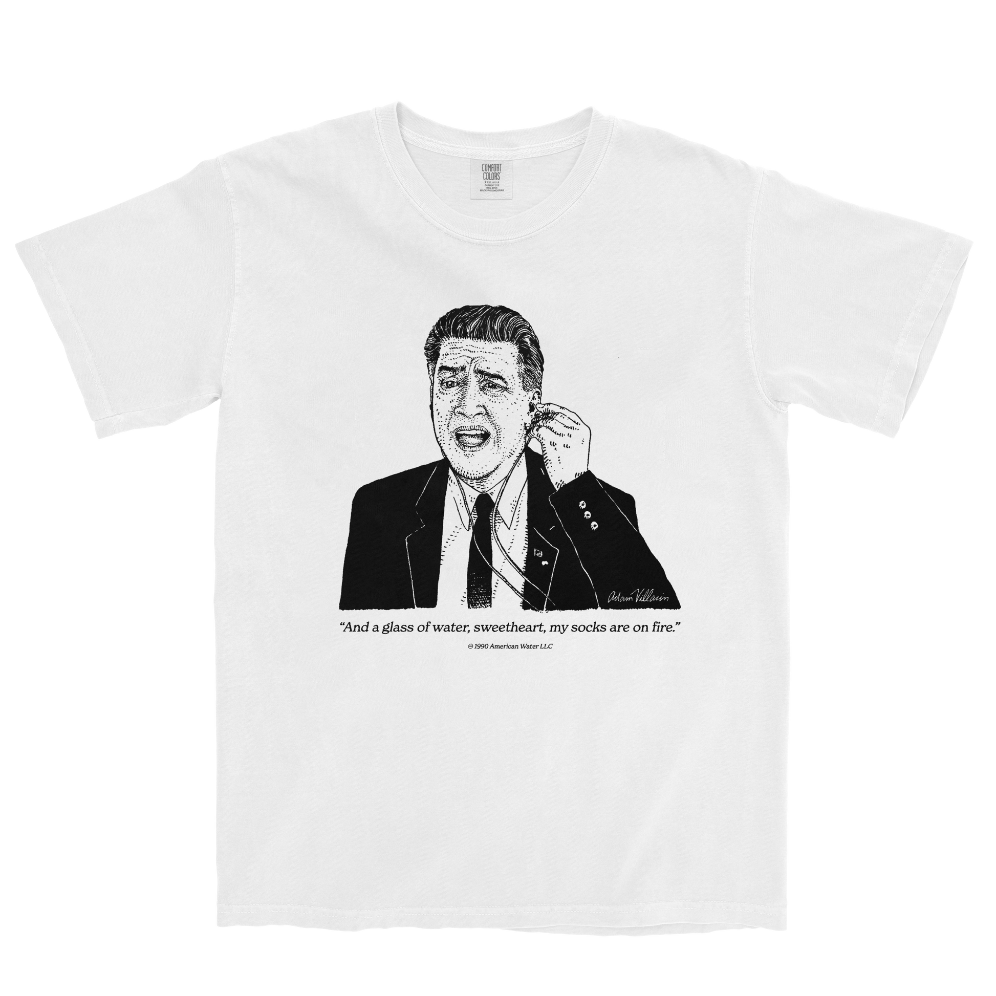 Made in collaboration with Adam Villacin, American Water’s collectible "My Socks Are On Fire" T-shirt features Chief Gordon Cole in desperate need of water.